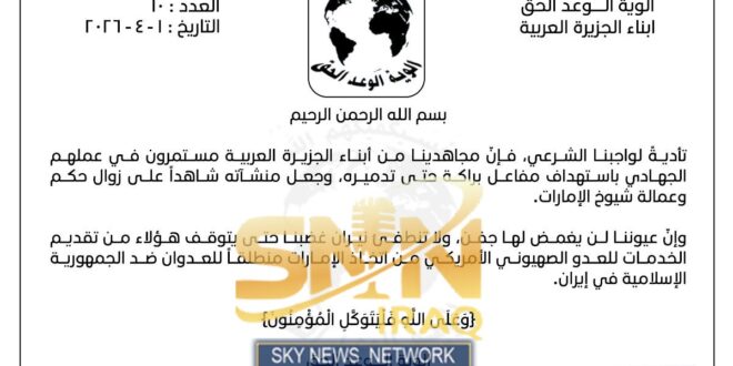 الوية الوعد الحق في بيان لهم: مستمرون باستهداف مفاعل براكة حتى تدميره، وجعل منشآته شاهداً على زوال حكم وعمالة شيوخ الإمارات. 4 أسابيع مضت الأخبار الامنية اضف تعليق شاركها Facebook Twitter مقالات مشابهة بسبب سوء الاحوال الجوية .. محافظ واسط يقرر تعطيل الدوام الرسمي في عموم المحافظة اليوم الثلاثاء باستثناء الدوائر الخدمية والأمنية 12 ساعة مضت نيجيرفان بارزاني يعلن دعمه لعلي الزيدي في تشكيل حكومة عراقية وطنية شاملة 12 ساعة مضت الأنواء الجوية: أمطار رعدية تضرب وسط وشمال العراق الثلاثاء مع توقع تحسن تدريجي نهاية الأسبوع 12 ساعة مضت رابط القناة: https://t.me/snn_iraq شاركها Facebook Twitter