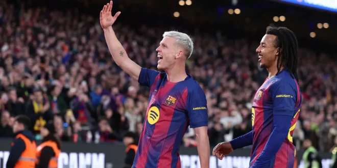 وأنجز الفريق الكتالوني المهمة بثلاثة أهداف في الشوط الثاني، سجلها داني أولمو ورافينيا ولامين يامال في الدقائق 52 و57 و73 من المباراة التي أقيمت على ملعب “كامب نو”.