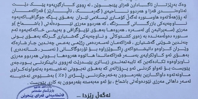 وجاء في كتاب رسمي صادر عن قائممقام بنجوين بالوكالة، عدنان كاكهرش، اطلعت عليه المصدر، أنه تم توجيه الطلب إلى حكومة محافظة السليمانية، مع التأكيد على ضرورة إيلاء اهتمام أكبر للقضاء من ناحية توفير الميزانية اللازمة.