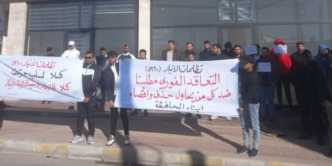 وطالب منسق الاحتجاجات الجهات المعنية بالنظر إلى أوضاع المشمولين بملف الملحق وإنهاء معاناتهم، عبر الإسراع بحسم إجراءات التعاقد أسوة ببقية الملفات التي جرى حلها سابقاً.