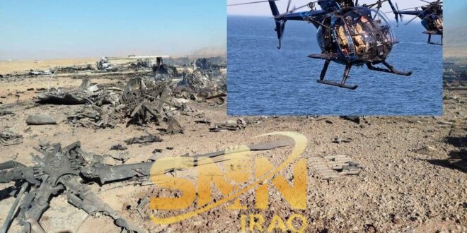 ⭕️ بجانب حطام طائرة النقل عسكري يوجد طائرة هليكوبتر “Little Bird” تقول القوات الأمريكية انه تم تدميرها عمداً.