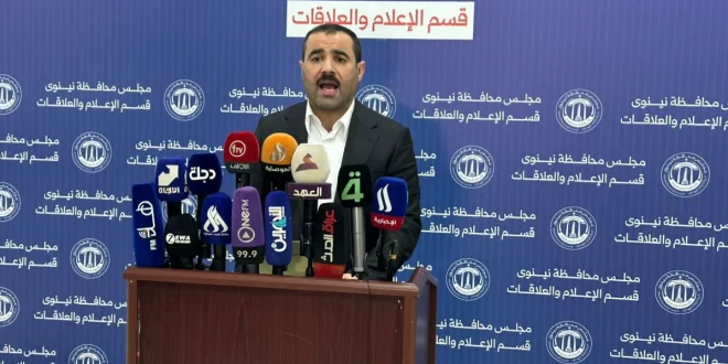 أكد مجلس محافظة نينوى، يوم الخميس، أن إثارة ملف الأراضي بطريقة تمثل “إساءة كبيرة” ومحاولة لخلط الأوراق عبر الاستعراض الإعلامي، مرفوض بشكل قاطع، ورفضه أي قفز على صلاحيات الحكومة المحلية والوصاية على عملها الرقابي والتشريعي، حسب تعبيره.