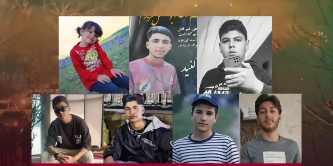 ونوهت المنظمة إلى أسماء الأطفال المقتولين، وهم كل من: أمير محمد أربابوري، و ميلينا أسدي، وهما طفلان كورديان، و سام افشاري، وأبو الفضل حيدر موسلو، وهما طفلان تركيان، ومحمد قاسم روستا، وهو طفل من لورستان، وطفلان آخران هما محراب كولستاني وأمير سالار بهماني نجاد قُتلوا على يد القوات الايرانية، وذلك خلال احتجاجات حاشدة شهدتها مدينة مرودشت، و محافظات فارس، وكرمانشاه، وأصفهان، ومدينة “كرج”.
